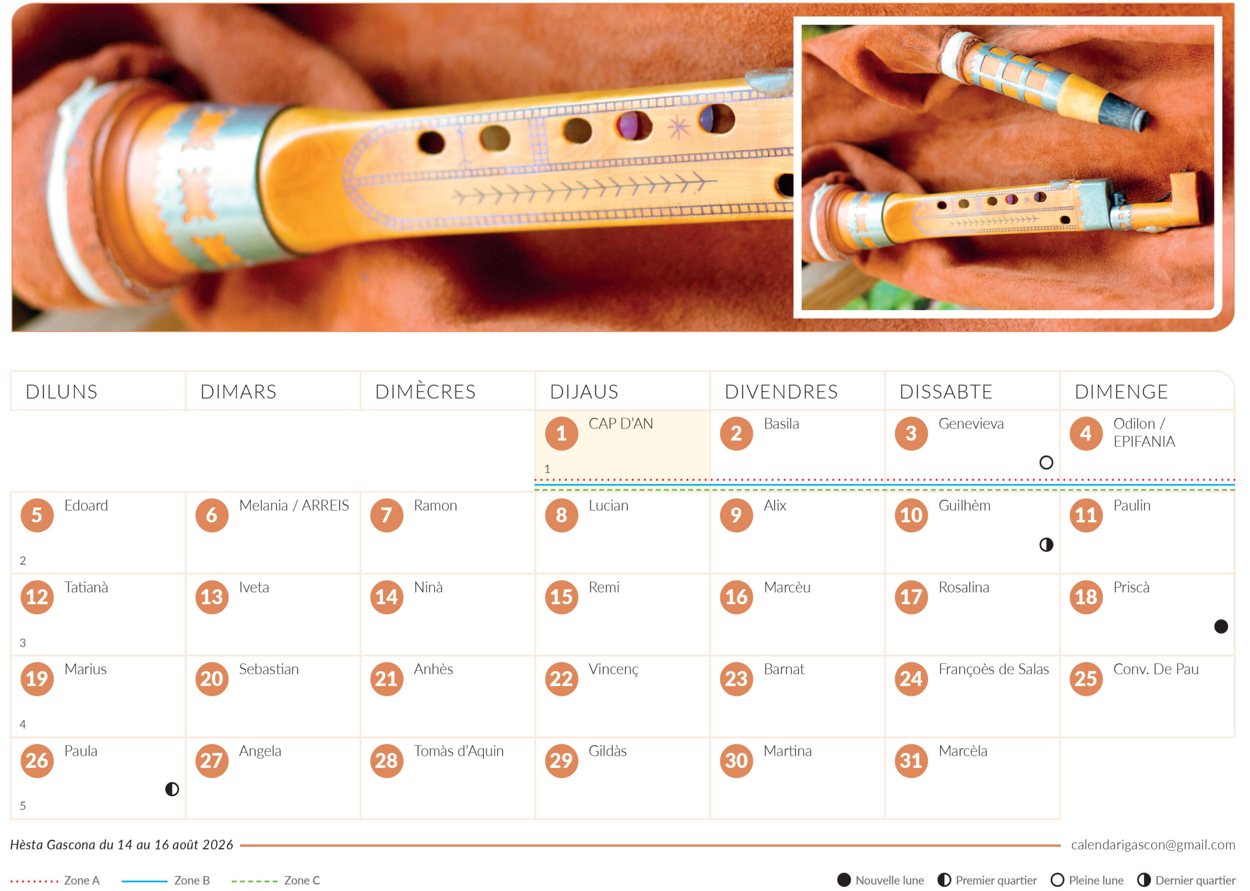 - élaboration d’un Calendari Gascon chaque année en partenariat avec les écoles