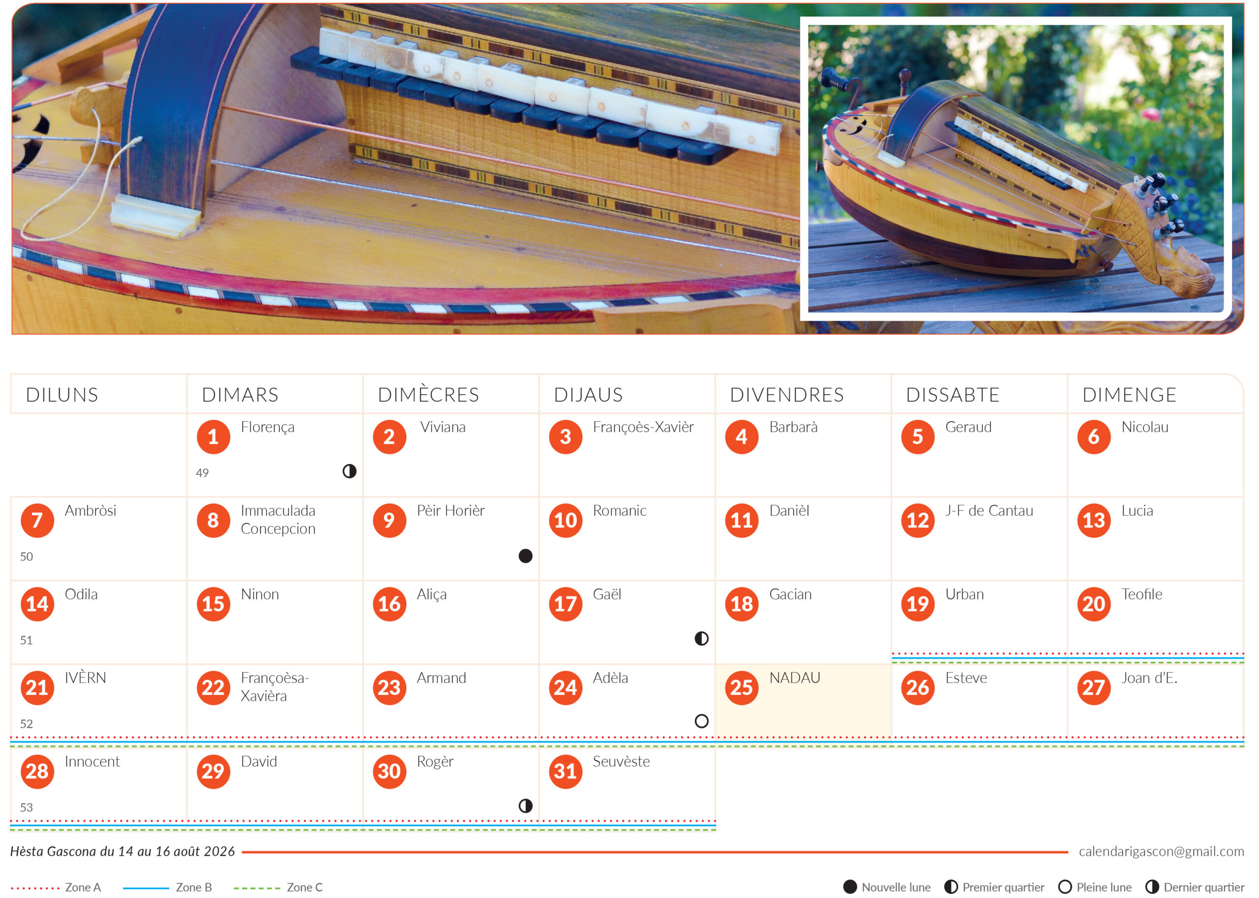 - élaboration d’un Calendari Gascon chaque année en partenariat avec les écoles